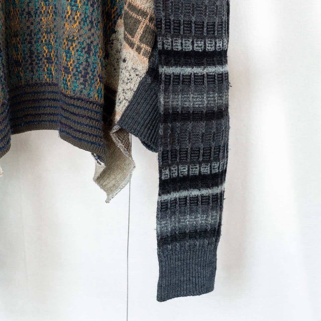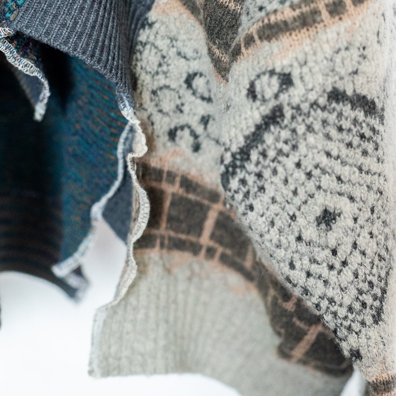 ※本製品は古着を再構築して制作しているため、使用感や汚れ、ダメージ、縫製の歪みや左右差などが見られる場合がございます。これらは一点一点異なる表情を持つ特性として、デザインの一部としてご理解ください。