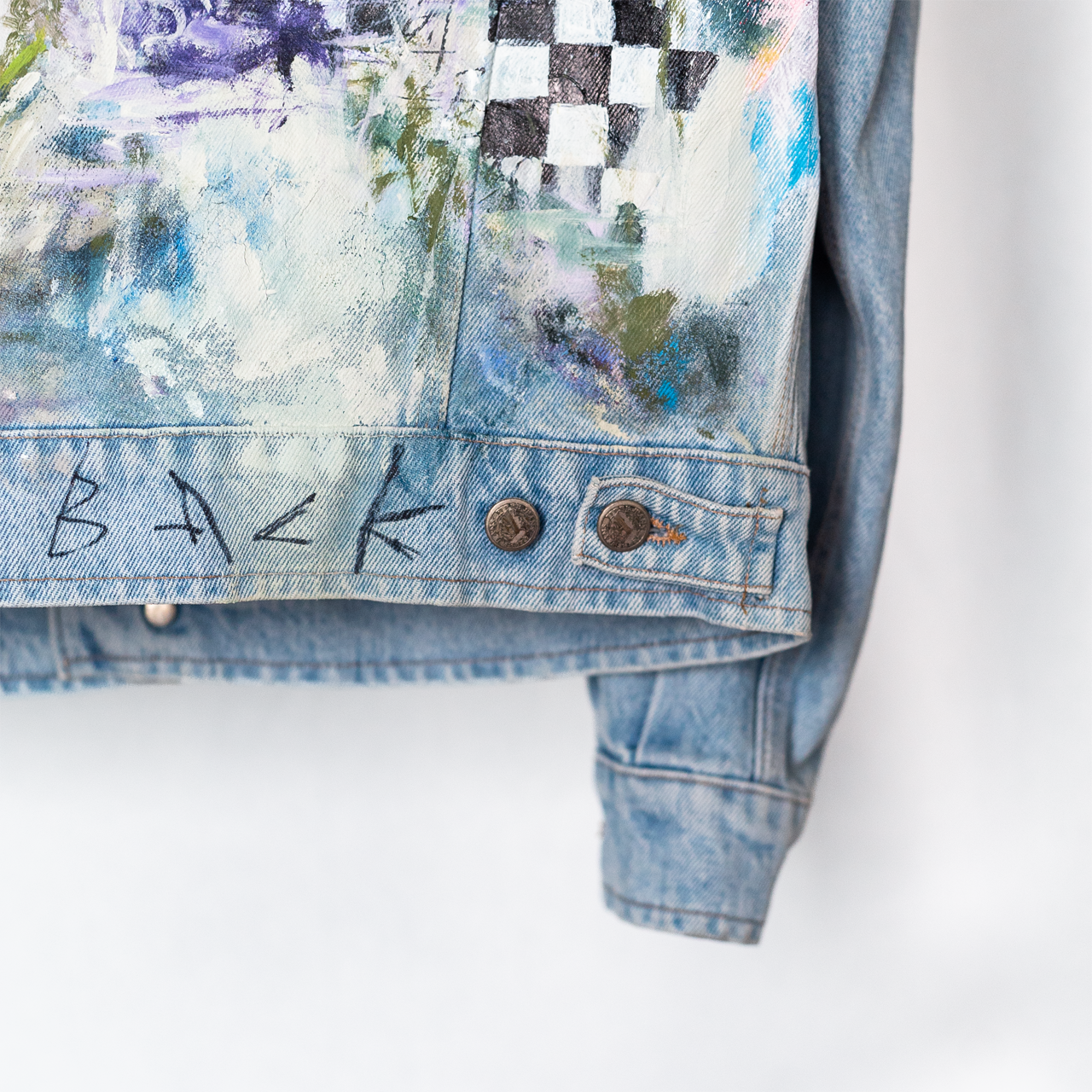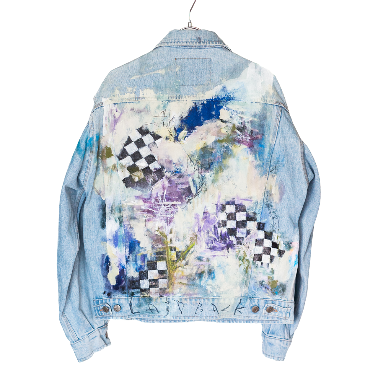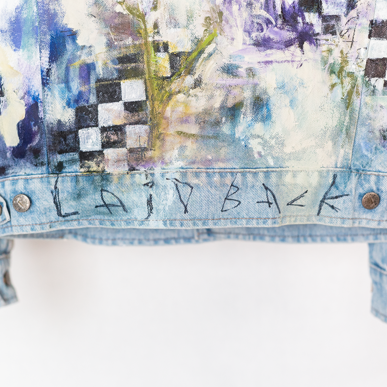 Paint jaket "LAID BACK" Price:¥15,000+tax Material:- Size : 着丈65.5cm/身幅59cm/左袖77cm/右袖77cm ※古着の再構築によるアイテムになるため、一部、使用感、汚れやダメージ等がございます。写真をご確認の上、仕様としてご了承の上でご注文いただきますよう、お願いいたします。