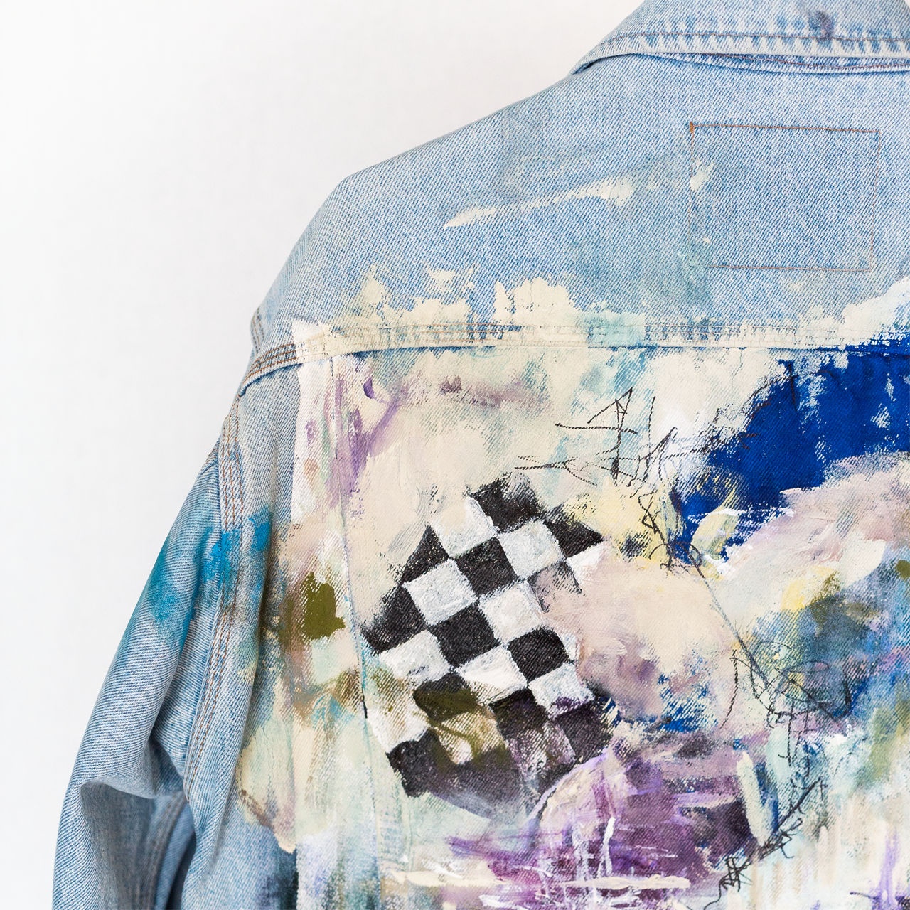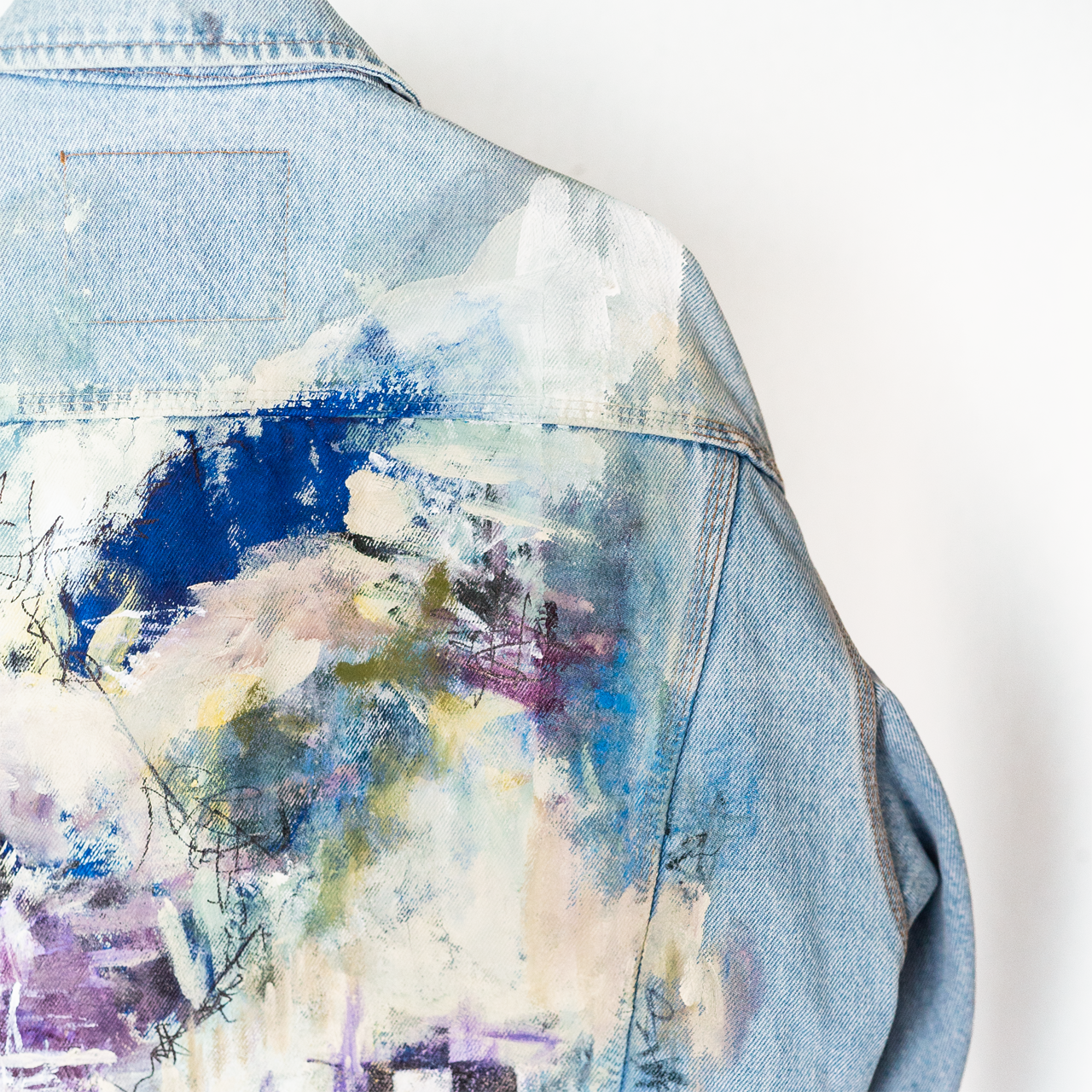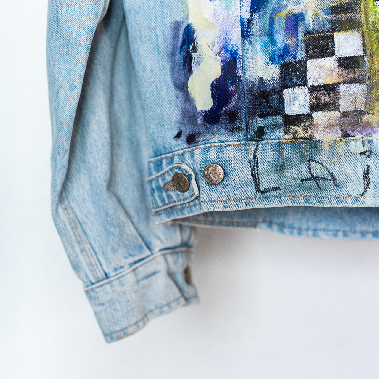 Paint jaket "LAID BACK" Price:¥15,000+tax Material:- Size : 着丈65.5cm/身幅59cm/左袖77cm/右袖77cm ※古着の再構築によるアイテムになるため、一部、使用感、汚れやダメージ等がございます。写真をご確認の上、仕様としてご了承の上でご注文いただきますよう、お願いいたします。